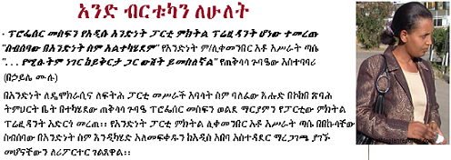 How could the two "UDJ" remain legal entity in Ethiopia when they have named and 'appointed' Birtukan as their chairwoman is begging for an answer? If this is another back-breaking accommodation to inch forward the democratic process, it is wrong!